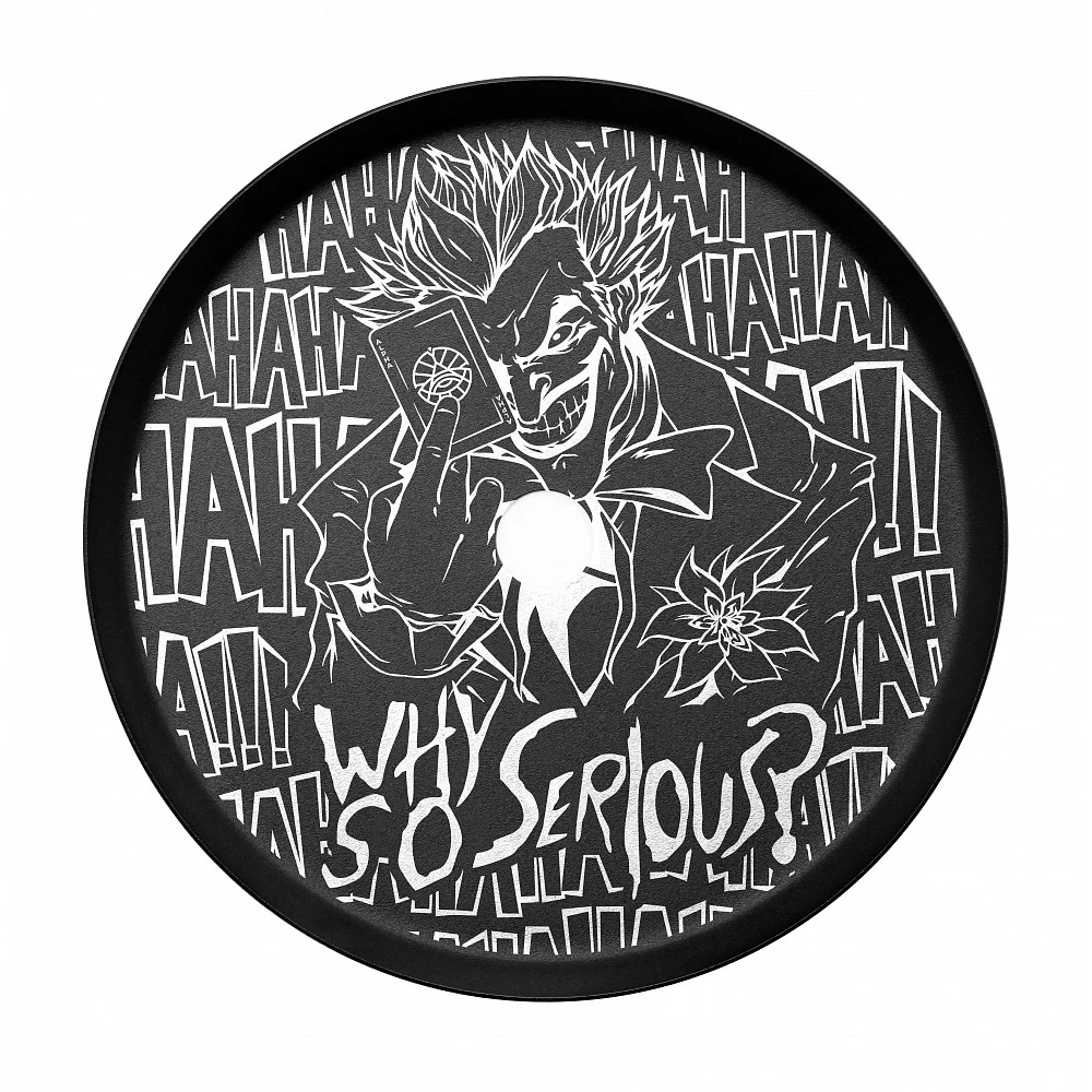 Από την άλλη πλευρά, η έκδοση Joker συνδυάζει τα χαρακτηριστικά μωβ και πράσινου χρώματος, και έχει στο πιατάκι του το Joker να κρατάει ένα χαρτί τράπουλας με το λογότυπο της Alpha Hookah, δημιουργώντας ένα σχέδιο που αποπνέει μυστήριο και ένταση. Η εκδοχή αυτή είναι ιδανική για εκείνους που προτιμούν τη σκοτεινή και έντονη αισθητική του διάσημου κακοποιού και θέλουν να εκφράσουν το μοναδικό τους στυλ μέσω του ναργιλέ τους.